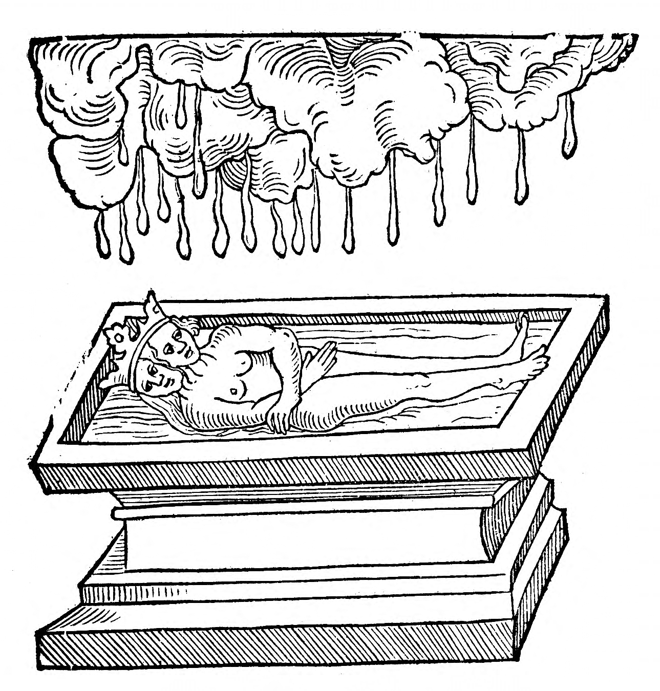 The multiplication of the elixir is done through two methods: one by repeated solution and coagulation of the stone, and the second by casting the first stone of the elixir, either white or red, over a body [projectionem ... super corpus] in the same quantity as the body. Then it is converted into medicine, and at the same time these are placed to dissolve in their water and menstruum. Thus the elixir is the first yeast [fermentum] of the tincture, just as women bakers do [i.e., by using vaginal yeast to ferment dough].